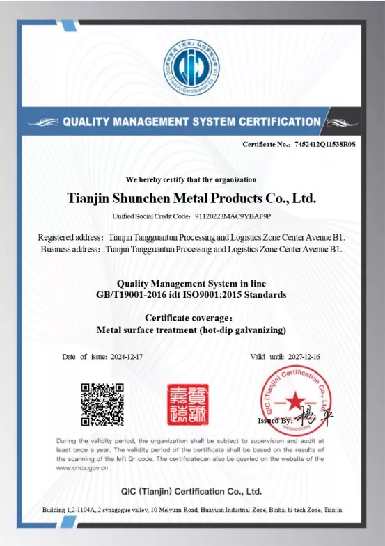 Η ανώτερη διοίκηση της Shunchen έχει πάνω από 20 χρόνια εμπειρίας και τεχνολογίας στην παραγωγή γαλβανισμού εν θερμώ.