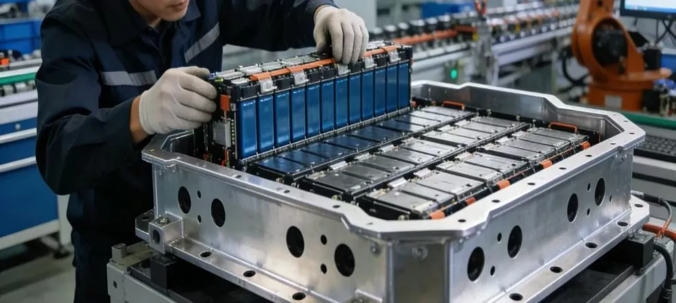 Τομέας μεταφορών: Κοντινό πλάνο της διάταξης πλαισίου πακέτου μπαταριών οχημάτων νέας ενέργειας