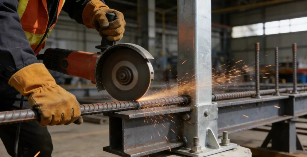 Βασική εφαρμογή: Χρησιμοποιείται για την ενίσχυση δοκών, υποστυλωμάτων, πλακών δαπέδου και θεμελίων εξοπλισμού σε κτίρια εργοστασίων, κοπή με ακρίβεια σύμφωνα με σχέδια σχεδιασμού, προσαρμογή σε μεγάλης κλίμακας κατασκευή και συνεργική βελτίωση της συνολικής δομικής ακεραιότητας του κτιρίου του εργοστασίου με ενσωματωμένα εξαρτήματα. (διάμετρος 8mm, μήκος 600mm) και ραβδώσεις χάλυβας HRB400 (διάμετρος 14mm, μήκος 3500mm) τεμάχια κοπής, αντίστοιχα που χρησιμοποιούνται για ενίσχυση στεφάνης και κύρια ενίσχυση δοκών και υποστυλωμάτων. Η απόδοση επεξεργασίας φτάνει τα 550 τεμάχια/ώρα, με κατακόρυφη απόκλιση ≤ 0,5 ° για την αιχμή. Έχει υψηλό βαθμό προσαρμογής με τα προενσωματωμένα εξαρτήματα, ποσοστό προσόντων συγκόλλησης 99,8% και χρήση 320 τόνων. Πληροί τις απαιτήσεις βαρέως φορτίου του εργοστασιακού εξοπλισμού και συμμορφώνεται με τις προδιαγραφές σχεδιασμού για κατασκευές από σκυρόδεμα.