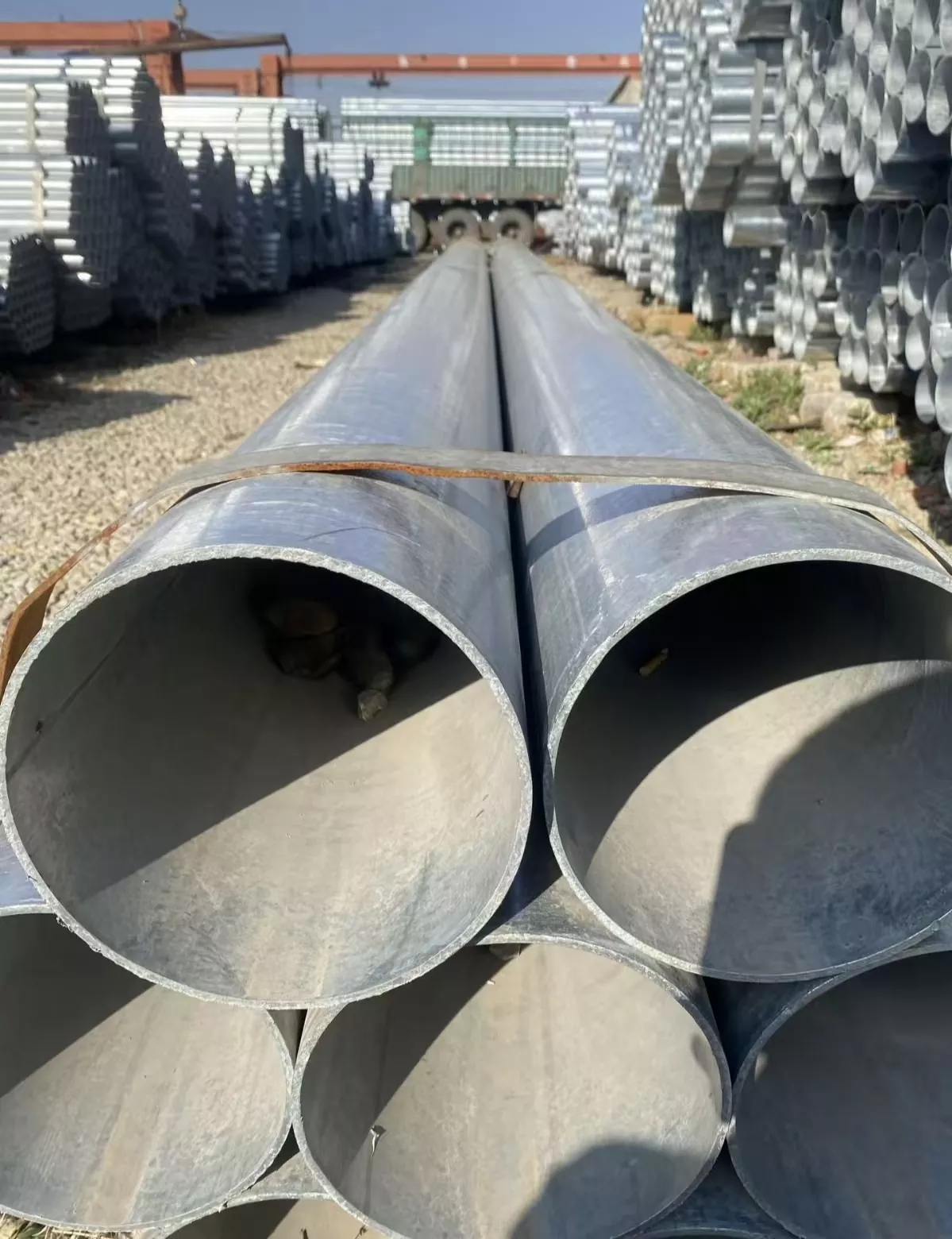 Όσον αφορά την επιλογή υλικού, χρησιμοποιούνται συγκολλημένοι σωλήνες SAW υψηλής ποιότητας όπως Q235B/Q345B/X70. Χρησιμοποιούνται προηγμένες αντιδιαβρωτικές διεργασίες συγκόλλησης με βυθισμένο τόξο διπλής όψης και γαλβανισμού εν θερμώ. Η διαδικασία παραγωγής περιλαμβάνει τρεις διαδικασίες παθητικοποίησης για τη βελτίωση της αντοχής του γαλβανισμένου προϊόντος στην αλκαλική διάβρωση, με αποτέλεσμα πυκνές και υψηλής αντοχής συγκολλήσεις. Κάθε τελικό προϊόν στεγνώνει, ελέγχεται και επισκευάζεται λεπτώς πριν από τη συσκευασία και την αποστολή. Διατίθεται ένα ευρύ φάσμα προδιαγραφών, με 236 προδιαγραφές. Υποστηρίζεται επίσης η προσαρμογή σωλήνων μεγάλης διαμέτρου με παχύ τοίχωμα.